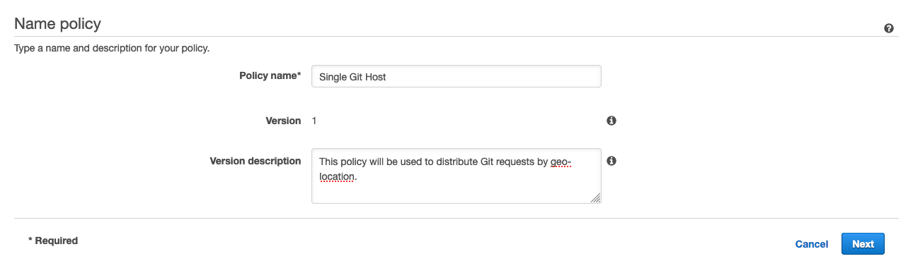 3. Fill in the Policy Name field with Single Git Host and click Next.