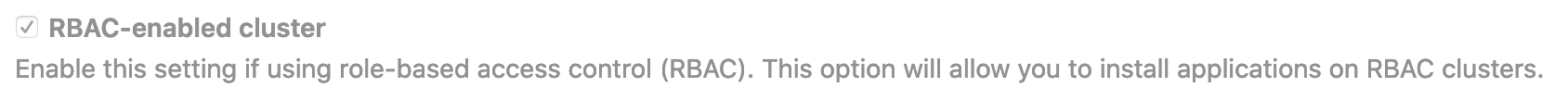 - A Role-based access control (RBAC) cluster, which is the GitLab default and recommended option.